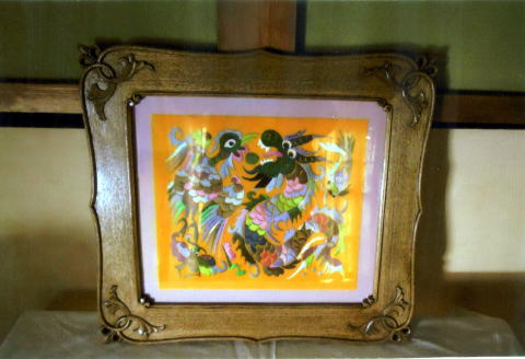 | 中国は桂林で求めた刺繍絵にあわせて額縁を掘りました。 | |
